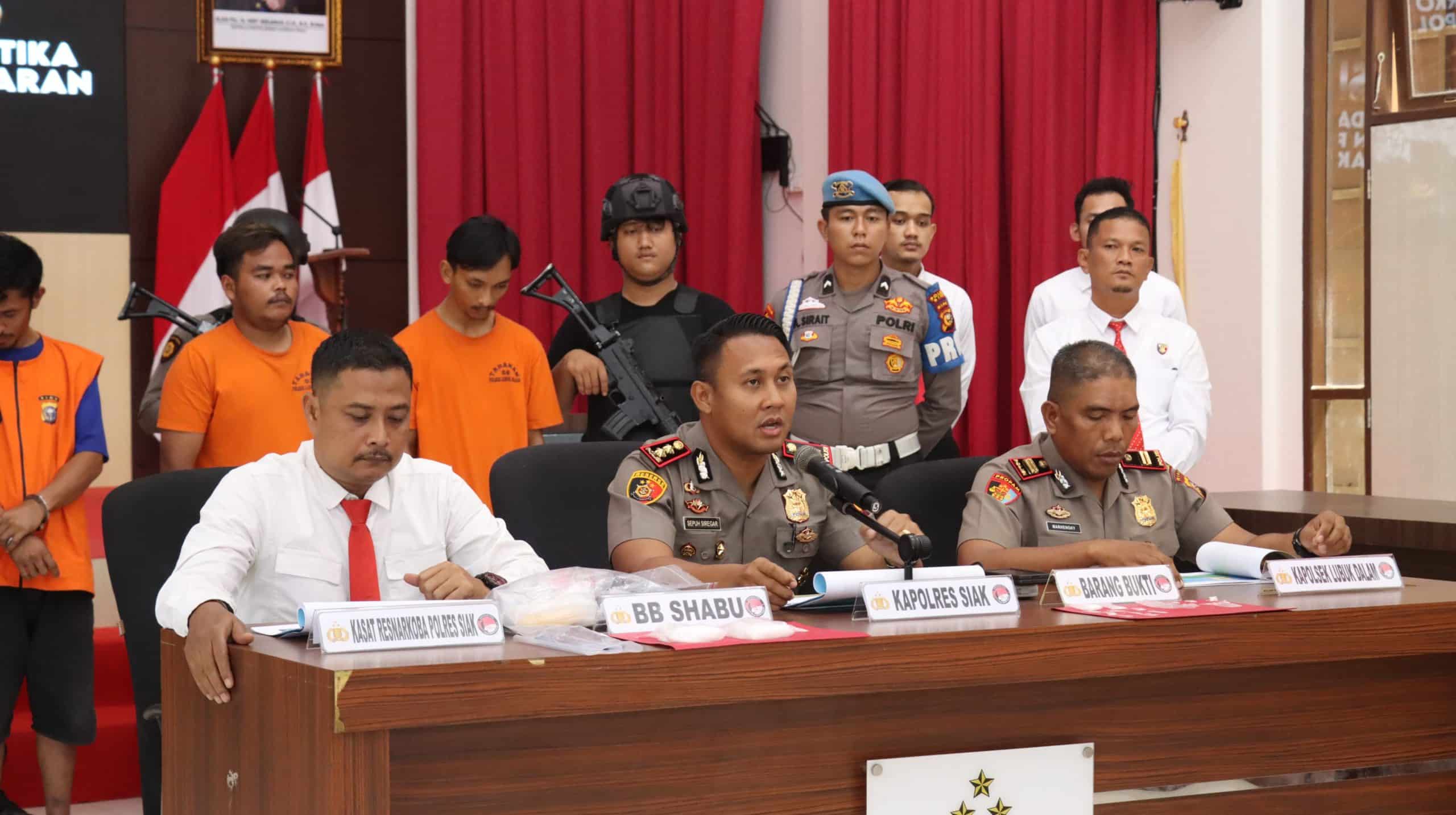 Konferensi pers tersebut dihadiri Kapolres Siak AKBP Sepuh Ade Irsyam Siregar, S.H., S.I.K., M.H., Kasat Resnarkoba Polres Siak AKP Benny Afriandi Siregar, S.H., M.H. bersama jajaran dan Kapolsek Lubuk Dalam IPTU Marhengky S.Sos., M.H., serta . Pengungkapan ini sekaligus menandai keberhasilan jajaran Satres Narkoba dan Polsek dalam mengungkap kasus narkotika secara beruntun hanya dalam hitungan hari.