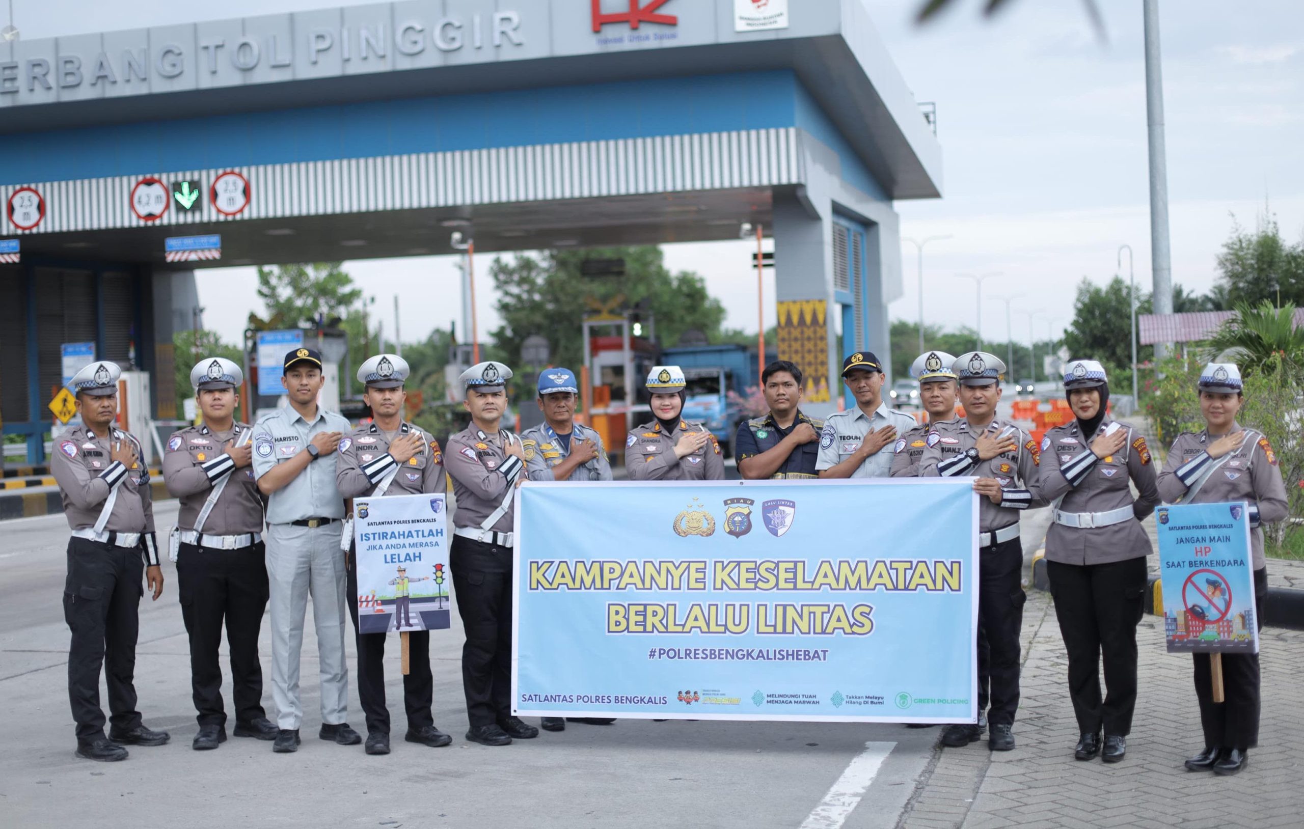 Kampanye keselamatan lalu lintas tersebut dipimpin langsung oleh Kasat Lantas Polres Bengkalis AKP Shandra Amalia, S.Tr.K., S.I.K., bersama personel Satlantas Polres Bengkalis, dengan melibatkan pengelola Tol HK Pinggir, Dinas Perhubungan Kabupaten Bengkalis, Jasa Raharja Cabang Dumai, serta tim kesehatan Polres Bengkalis. Kegiatan ini menjadi bagian dari upaya kolaboratif lintas instansi dalam mendukung kelancaran Operasi Keselamatan Lancang Kuning 2026 di wilayah hukum Polres Bengkalis.