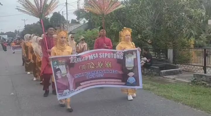 Siak Kecil:Riaunet.com~Desa Sepotong turut memeriahkan pelaksanaan pawai ta’aruf Musabaqah Tilawatil Qur’an (MTQ) Kecamatan Siak Kecil ke-XX yang digelar, Minggu (27/10/2025).