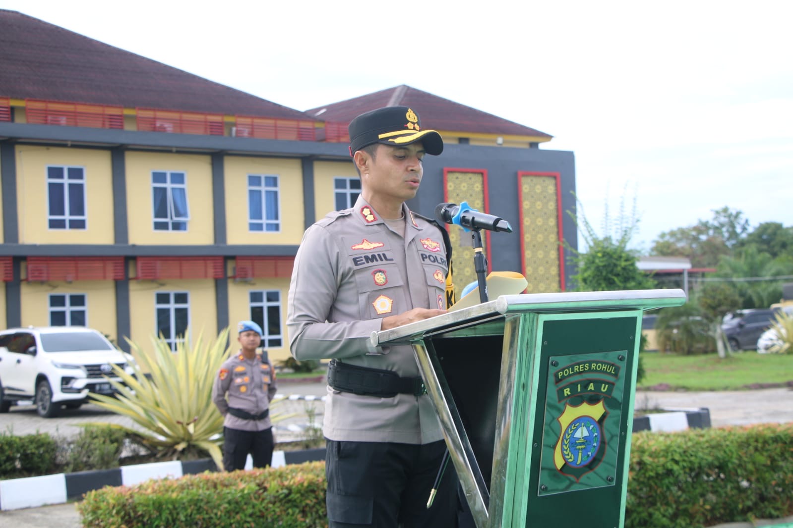 Apel ini dipimpin langsung oleh Kapolres Rokan Hulu AKBP Emil Eka Putra, S.I.K, M.Si, dan dihadiri unsur TNI, Forkopimda, perwakilan instansi pemerintah daerah, pihak Jasa Raharja, PJU Polres Rokan Hulu, serta peserta apel dari berbagai kesatuan. Hadir di antaranya Pabung Kodim 0313/KPR Mayor (Inf) Andri Suwardi, S.Sos, Kadis Perhubungan Kabupaten Rokan Hulu Minarli Lubis Ismail, SP, Kasat Pol PP Kabupaten Rokan Hulu Gorneng, S.Sos, M.Si, serta Penanggung Jawab Jasa Raharja Samsat Pasir Pangaraian Elvan Rahmat.