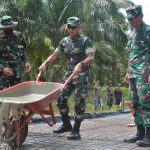 Perdana, Kasiter Korem Wira Bima dan Dandim Bengkalis Tuangkan Semen Cor dititik Pengerjaan di Desa Semunai