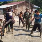 Satgas TMMD bersama Warga gotong-royong di Desa Api Api.