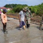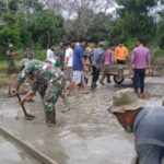 Kodim 0303/Bengkalis Bersama Warga  Semenisasi Jalan Puskesmas Tenggayun