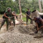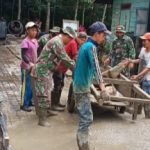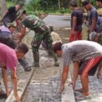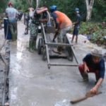 Satgas TNI (TMMD) Berjibaku Mengaduk Semen Pengecoran Jalan