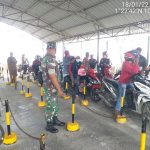 Di Pelabuhan Roro Sungai Selari, Babinsa Koramil 05/Bukit Batu Tegakkan Pendisiplinan Prokes COVID-19