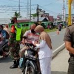 Diperbatasan Pakning Asal, Babinsa Koramil 07/ Bukit Batu Cek Suhu Pengendara Yang Lewat