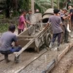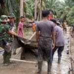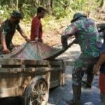 Kesemangatan Kerjasama TNI dan Warga Menbangun Jalan di Temiang