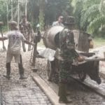 Kodim 0303/Bengkalis Koramil 07 Bukit Batu Bersama Warga Laksanakan  Semenisasi Jalan Puskesmas Tenggayun