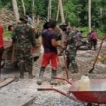 Satgas TNI bersama warga Terus Bersinergi Bangun Jalan