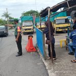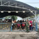 Di Pelabuhan Roro Sungai Selari, Personel Koramil 05/Bukit Batu Lakukan Disiplin Prokes