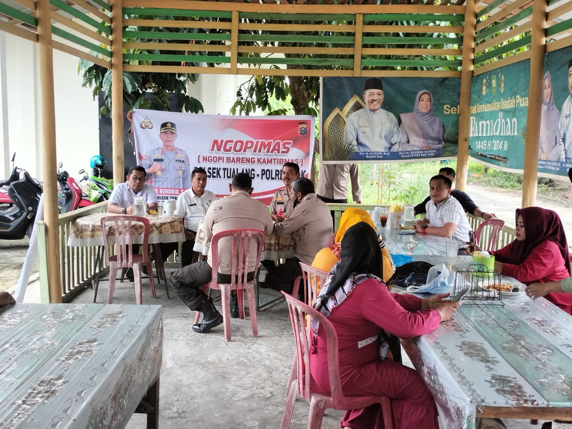 Melalui Program Ngopi Mas (Ngopi Bareng Kamtibmas), Kapolsek Tualang melakukan cooling system dalam rangka pendekatan kepada masyarakat jelang Pilkada serentak tahun 2024.