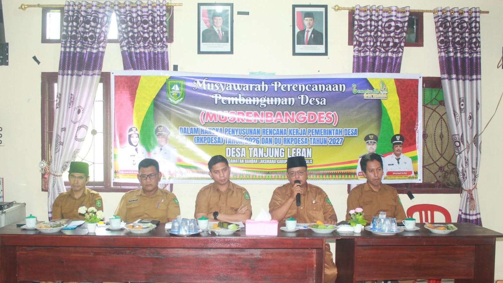 Musrenbang secara resmi dibuka oleh Camat Bandar Laksamana yang diwakili Sekretaris Kecamatan (Sekcam). Dalam sambutannya, Sekcam menegaskan bahwa Musrenbang merupakan forum strategis untuk menyerap aspirasi masyarakat dan memastikan arah pembangunan desa selaras dengan kebutuhan riil di lapangan.