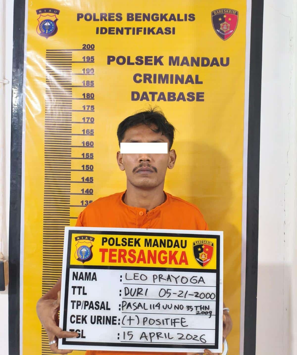Kapolres Bengkalis AKBP Fahrian Saleh Siregar, S.I.K., M.Si melalui Kapolsek Mandau Kompol Primadona, S.I.K., M.Si menjelaskan, tersangka yang diamankan berinisial L.P (26), yang sebelumnya telah masuk dalam daftar buronan kasus narkotika.