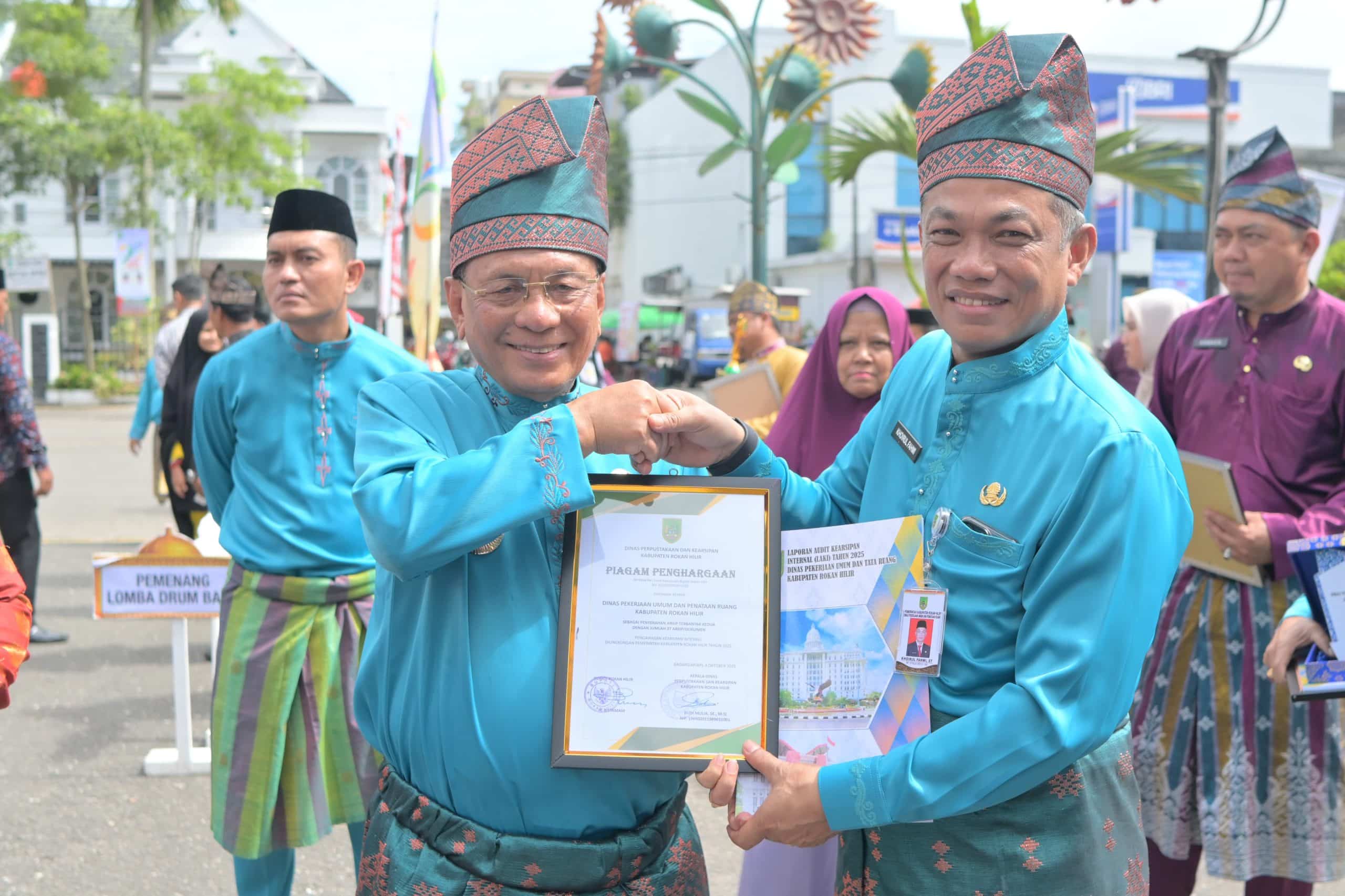 Selesai upacara, acara di lanjutkan dengan penyerahan hadiah lomba drumband tingkat SD,SMP dan SMA. Penyerahan bantuan satu unit kursi roda listrik dari Kementerian Sosial Republik Indonesia bekerja sama dengan Centra Abhiseka Pekanbaru dan penyerahan penghargaan hasil pengawasan kearsipan internal OPD di lingkungan Pemerintah Kabupaten Rokan Hilir. (LK)