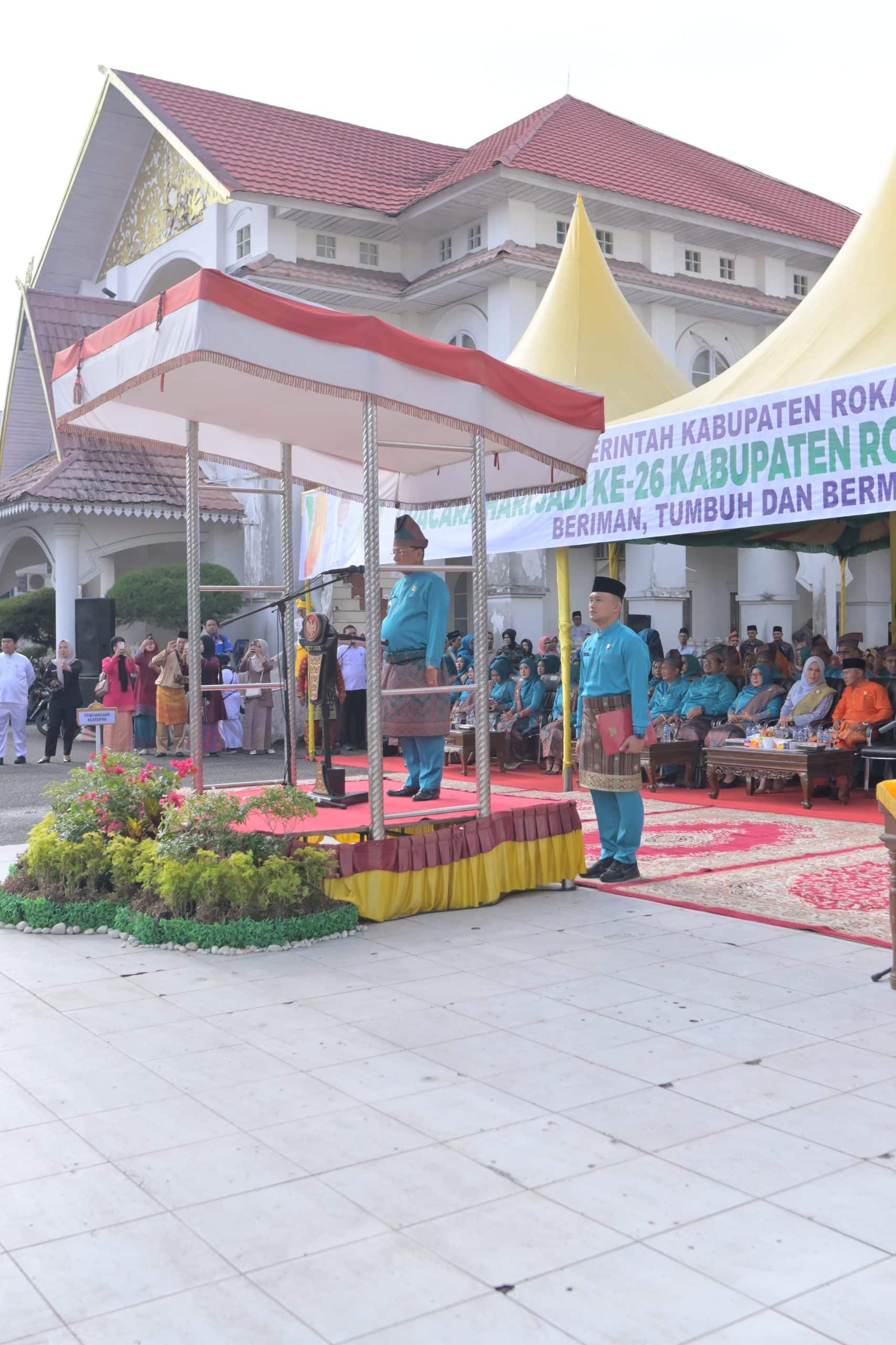 ROHIL:Riaunet.com~Bupati Rokan Hilir H. Bistaman bertindak sebagai pembina upacara pada peringatan hari Jadi Ke 26 Kabupaten Rokan Hilir, Sabtu (4/10/2025) di halaman Kantor BPKAD Jalan Merdeka Bagansiapiapi, Rohil, Provinsi Riau.