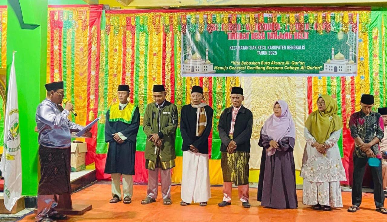 Siak Kecil:Riaunet.com~Pemerintah Desa Tanjung Belit menggelar Seleksi Tilawatil Qur’an (STQ) ke-XXV yang dibuka secara resmi oleh Penjabat (PJ) Kepala Desa Tanjung Belit, Winarto, dengan moto “Wujudkan Generasi Qurani dan Dukung Program Bermasa Bupati Bengkalis di halaman kantor desa, Sabtu (28/9/2025).