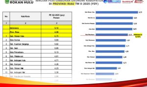 Angka tersebut tertuang dalam rincian Pertumbuhan Ekonomi Kabupaten/Kota se-Provinsi Riau Triwulan II (Year on Year), di mana capaian Rokan Hulu melampaui rata-rata provinsi yang berada di angka 4,59 persen dan juga di atas rata-rata nasional sebesar 5,13 persen.