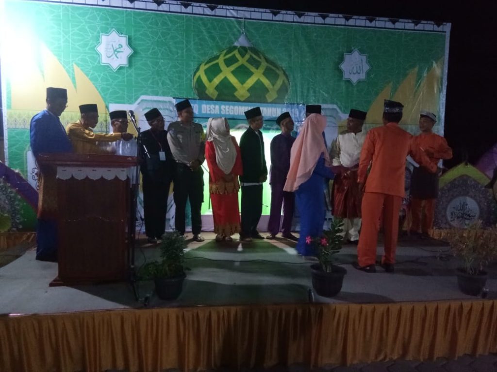 Ahmad Saleh selaku kepala desa segomeng dalam sambutannya menyampaikan dan berharap STQ bukan sekedar ajang kompetisi semata namun lebih dari itu perlu diterapkan dalam kehidupan sehari-hari dan terus menggiatkan Maghrib mengaji. Hal senada juga di sampaikan camat rangsang barat. Kita berharap dengan terus membaca dan mempelajari Alquran anak anak kita terhindar dari pengaruh globalisasi dan bahaya narkoba” ungkapnya. Sekaligus membuka STQ di tandai dengan pemukulan bedug dan tabuhan kompang.